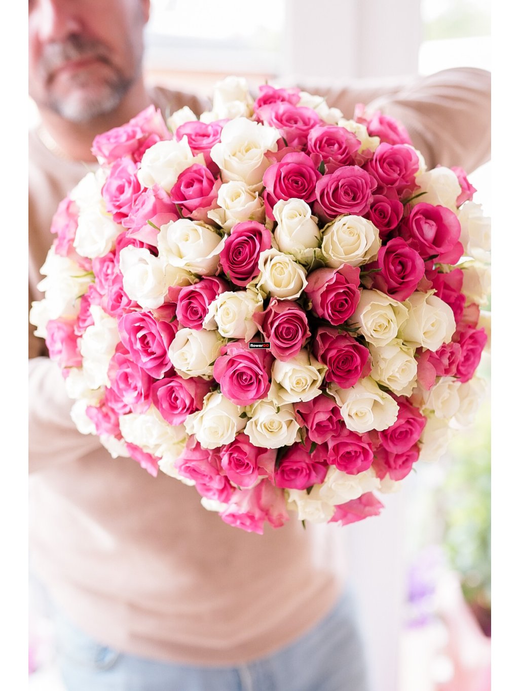 Valentýn 101 růží, růžové a bílé