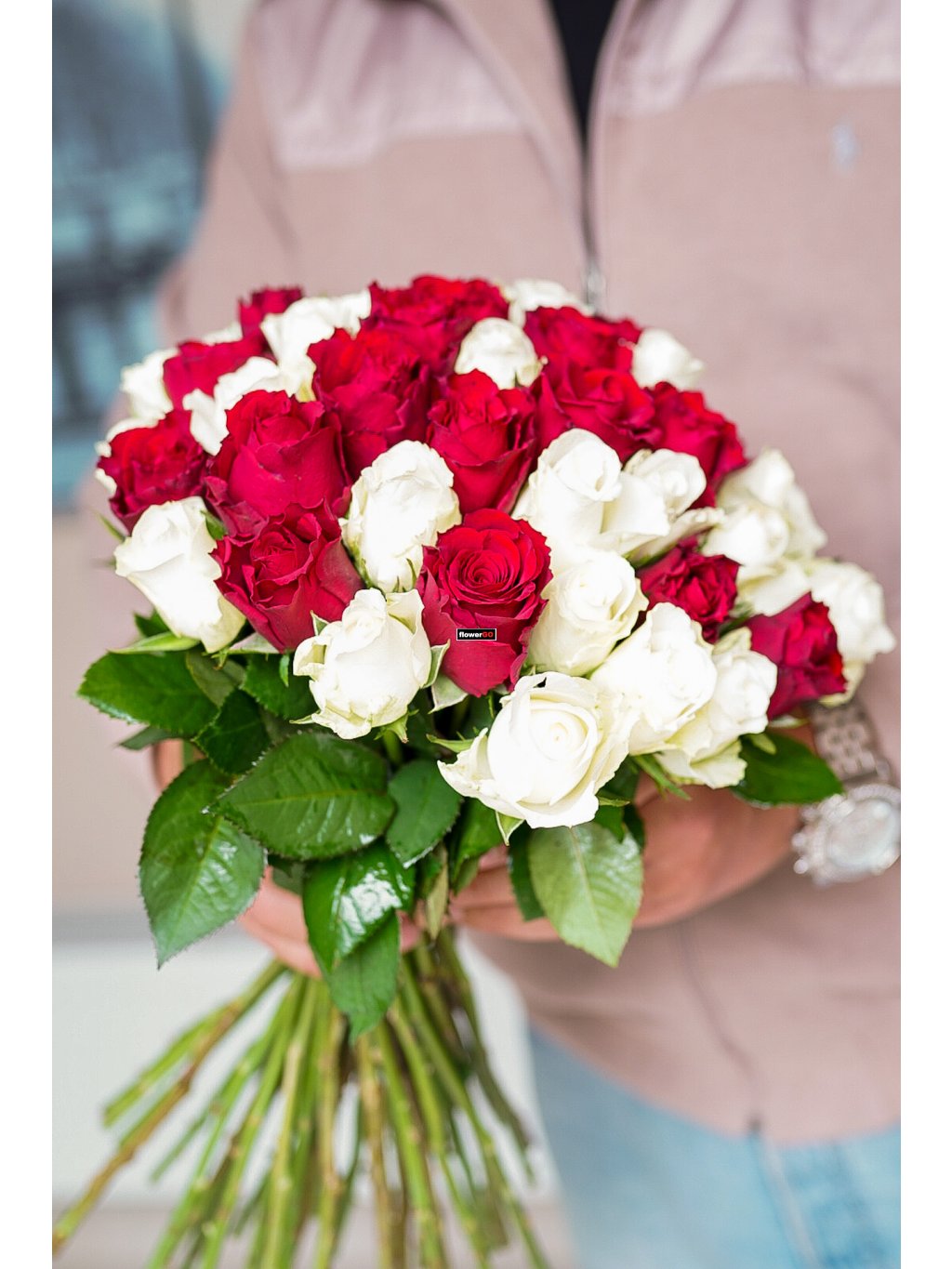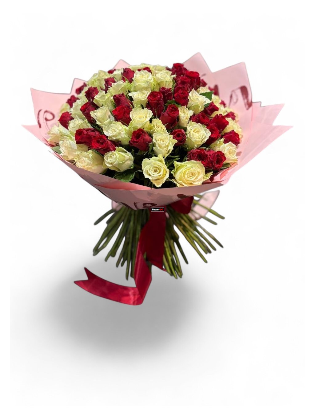 Valentýn 51 růží, červené a bílé