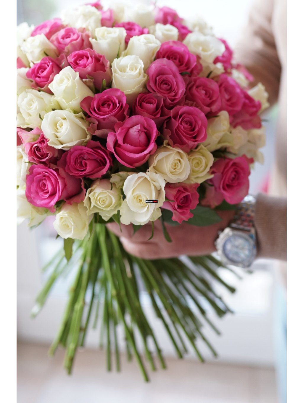 Barevné kombinace květů, odstíny růží i přesné složení kytic se mohou mírně lišit podle aktuální dostupnosti na našich prodejnách, odkud je vaše kytice připravována a doručována.
