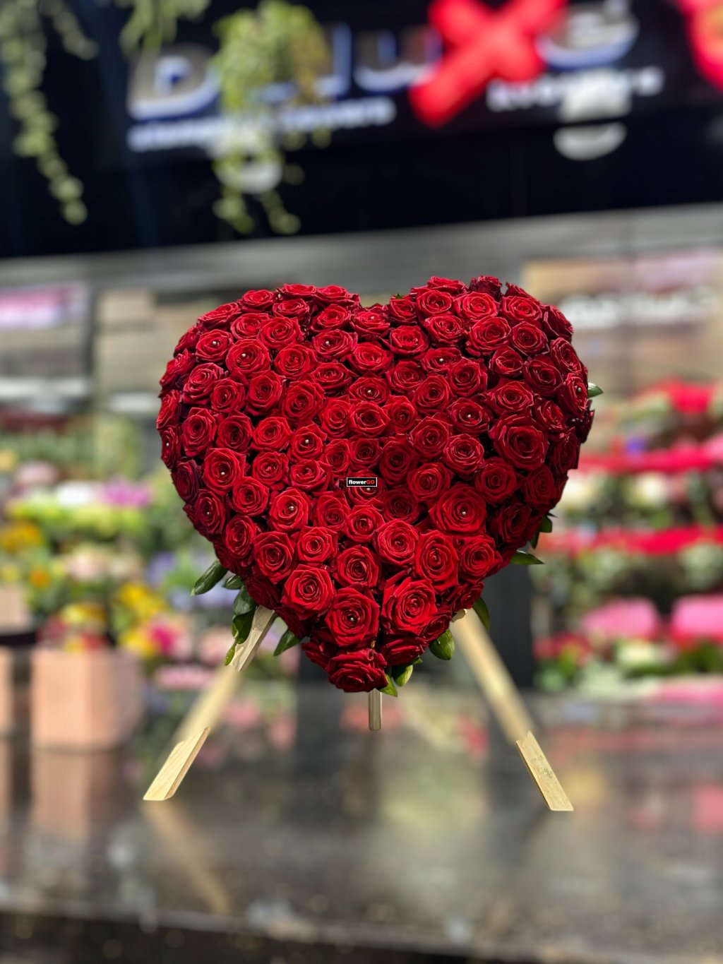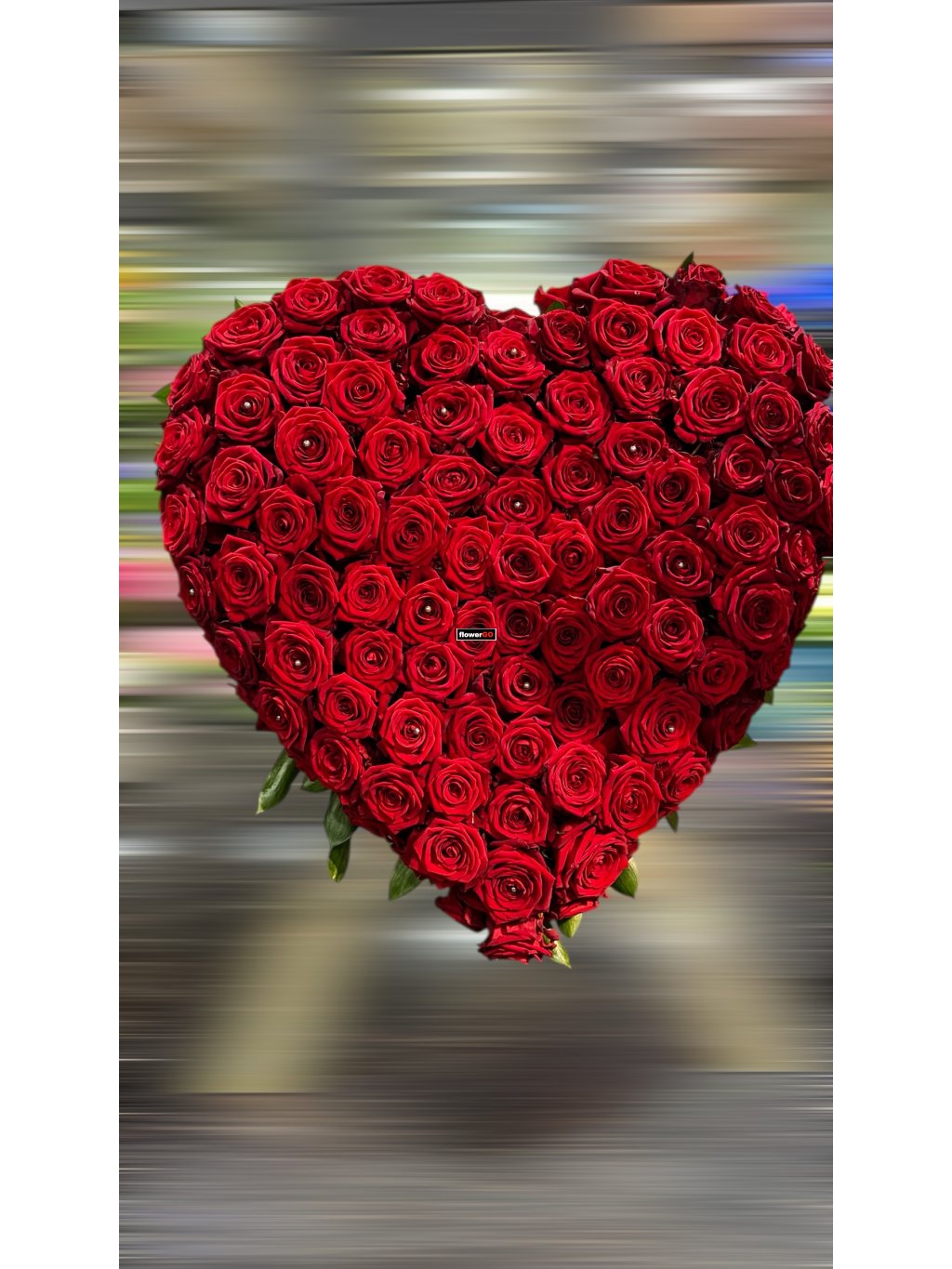 Luxusní vypichované srdce z přibližně 110–120 prvotřídních červených růží.