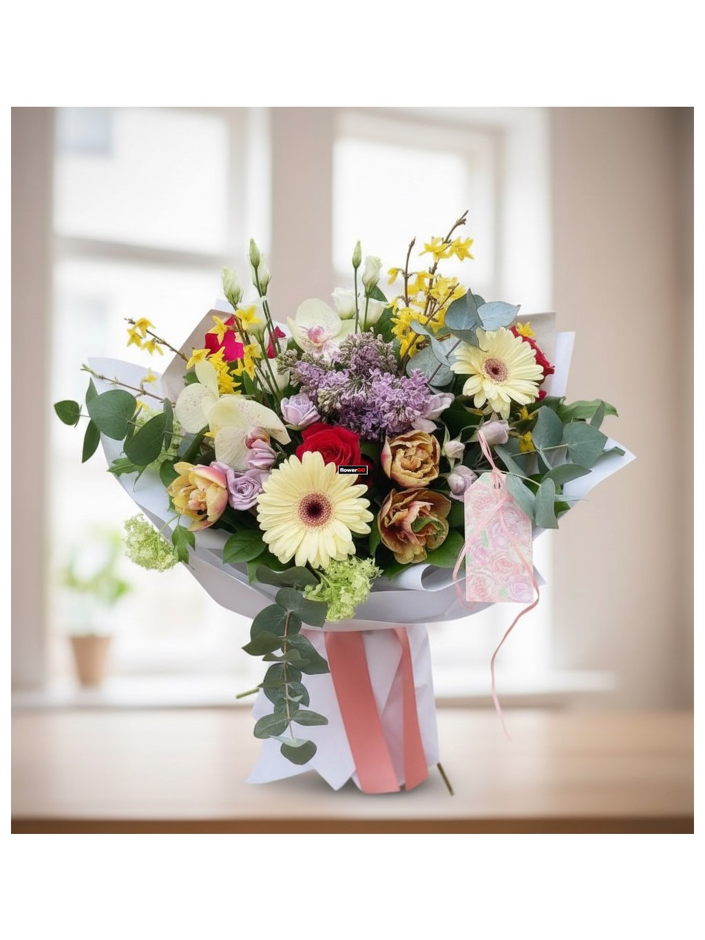 Složení kytic se může lišit v závislosti na aktuální dostupnosti květin na jednotlivých prodejnách. Vždy však dbáme na zachování celkového stylu, barevnosti a hodnoty kytice tak, aby výsledná vazba odpovídala prezentované kvalitě i zamýšlenému dojmu. Díky sezónním a čerstvým květinám může mít každá kytice originální charakter a vždy zůstává poctivě uvázaná a krásná. Každá kytice je originál
