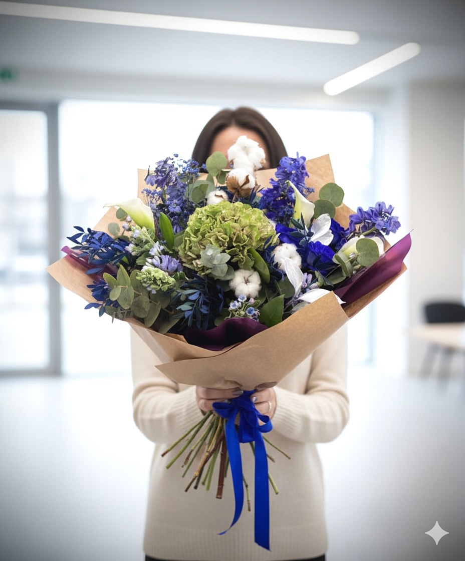 Kytice, jako výjimečný projev krásy a elegance, se v naší nabídce vyznačuje jedinečným spojením různých druhů květin. Zvláštní péči jsme věnovali vytvoření kompozice, která zaujme svou oblíbenou modrou barvou, přinášející do každé kytice špetku exkluzivity a šarmu.