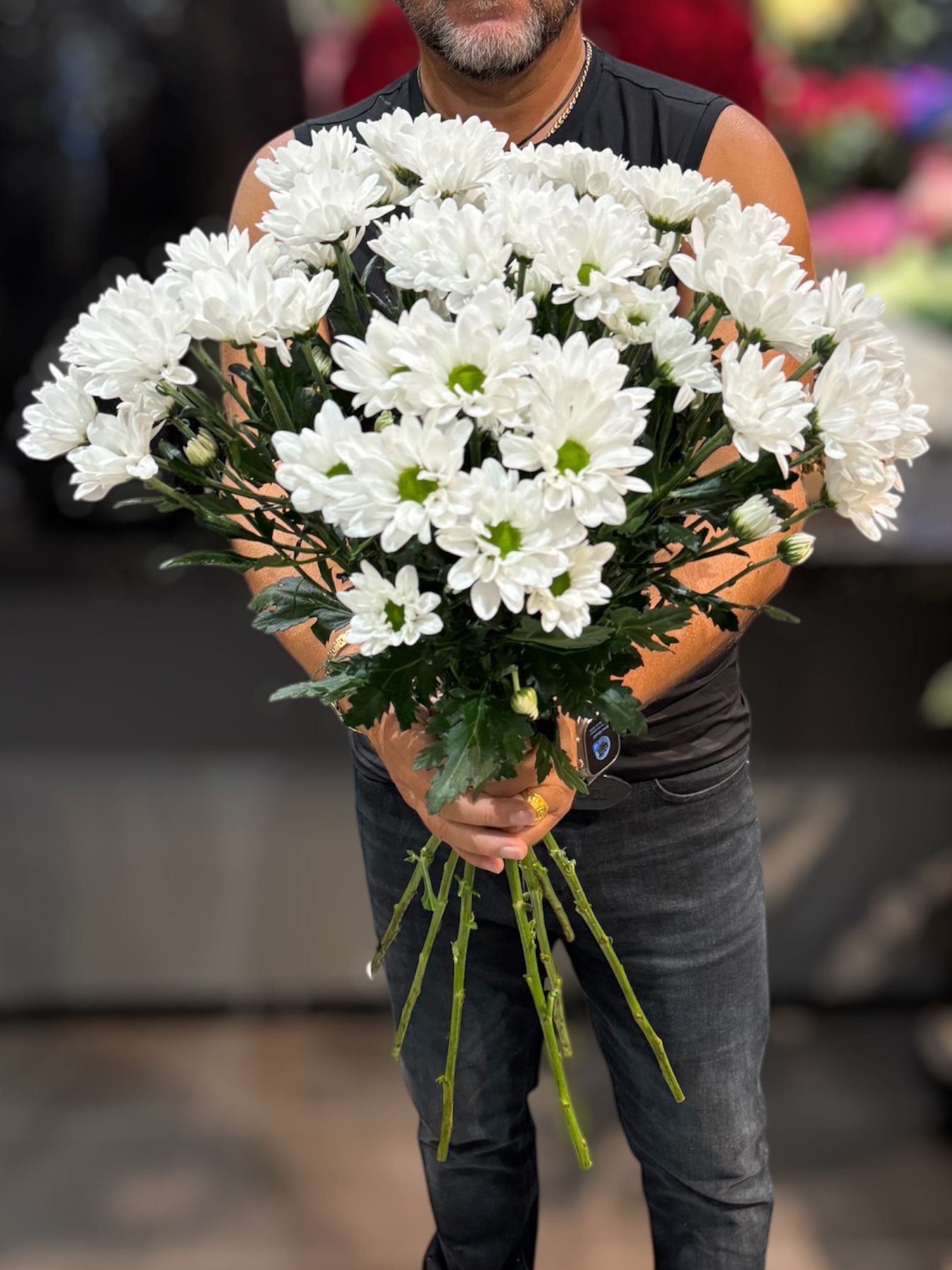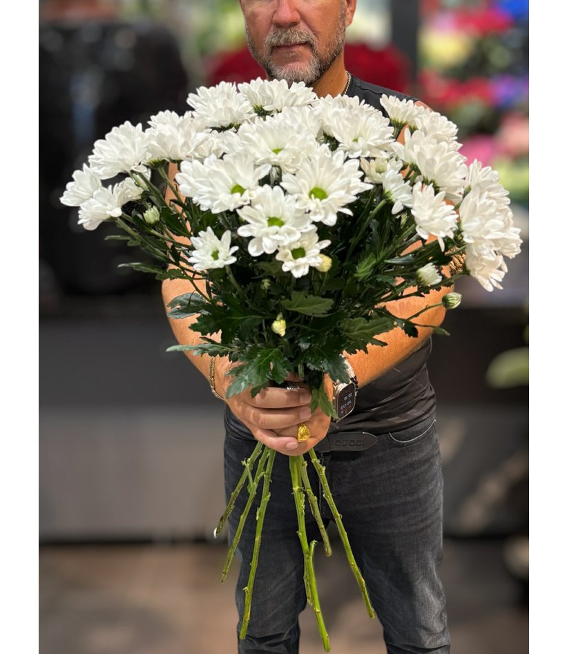 Čerstvá chrysanthema bílá – květ s vysokou gramáží, bohatým květenstvím a dlouhou výdrží.