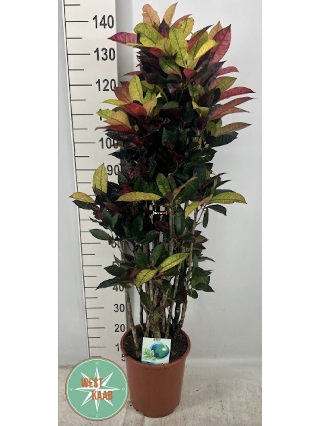 Exotická pokojová rostlina s výrazně zbarvenými listy v odstínech žluté, oranžové, červené, růžové a tmavě zelené. Každý list je originál, a rostlina tak působí jako živý obraz. Díky svému sytému vybarvení a hustému větvení (vertakt) se stává výraznou dominantou interiéru.