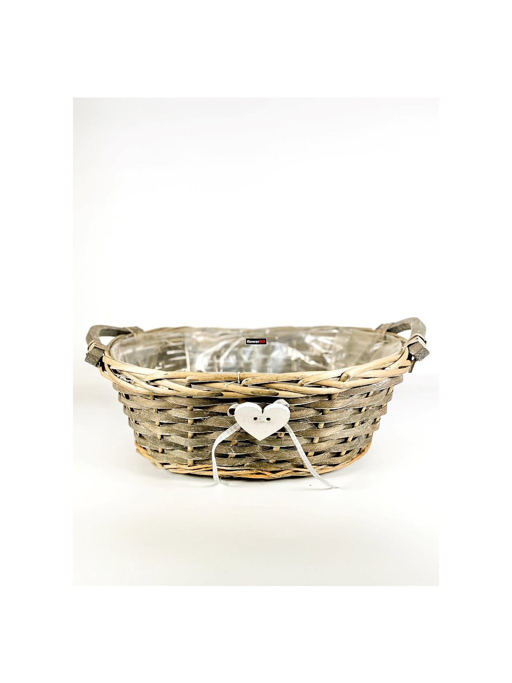 košík ovál se srdcem a dřevěnými oušky 35 cm