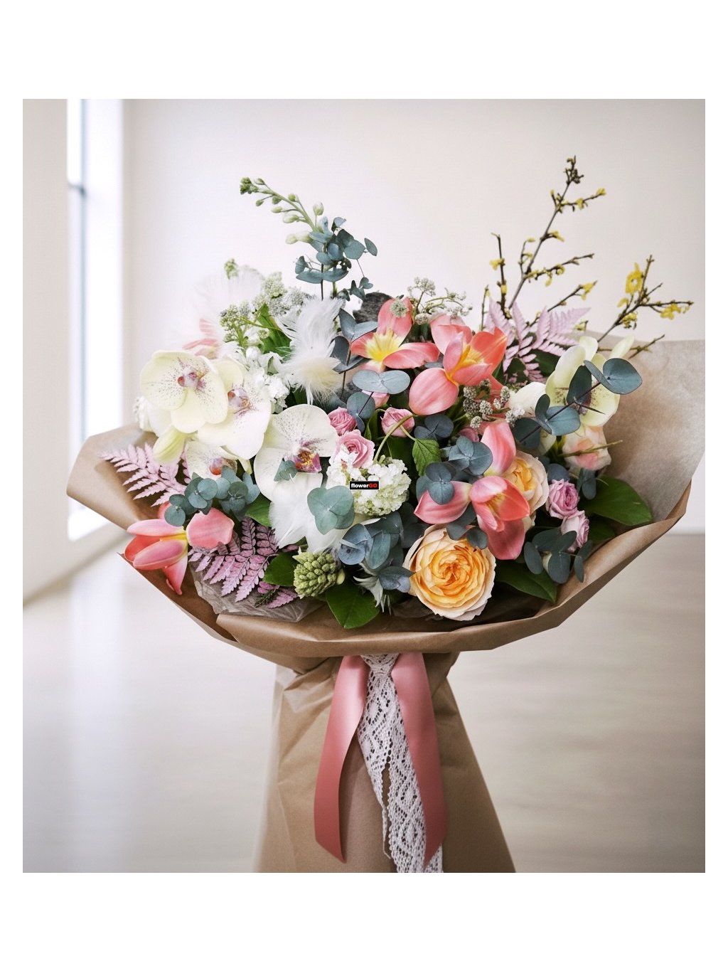 Složení kytic se může lišit v závislosti na aktuální dostupnosti květin na jednotlivých prodejnách. Vždy však dbáme na zachování celkového stylu, barevnosti a hodnoty kytice tak, aby výsledná vazba odpovídala prezentované kvalitě i zamýšlenému dojmu. Díky sezónním a čerstvým květinám může mít každá kytice jemně originální charakter a vždy zůstává poctivě uvázaná a krásná.