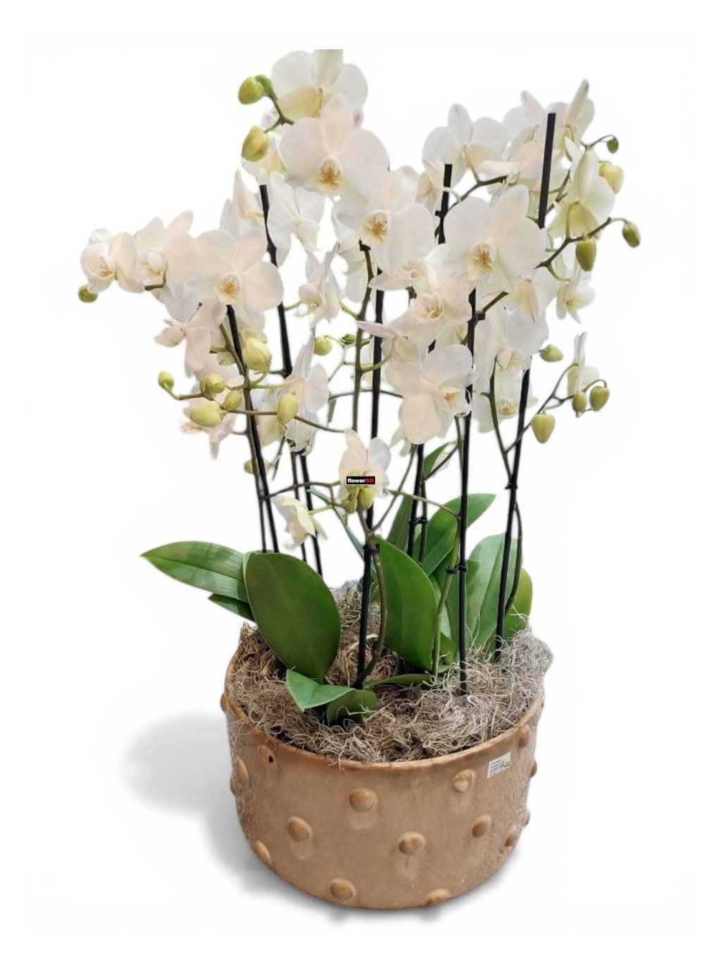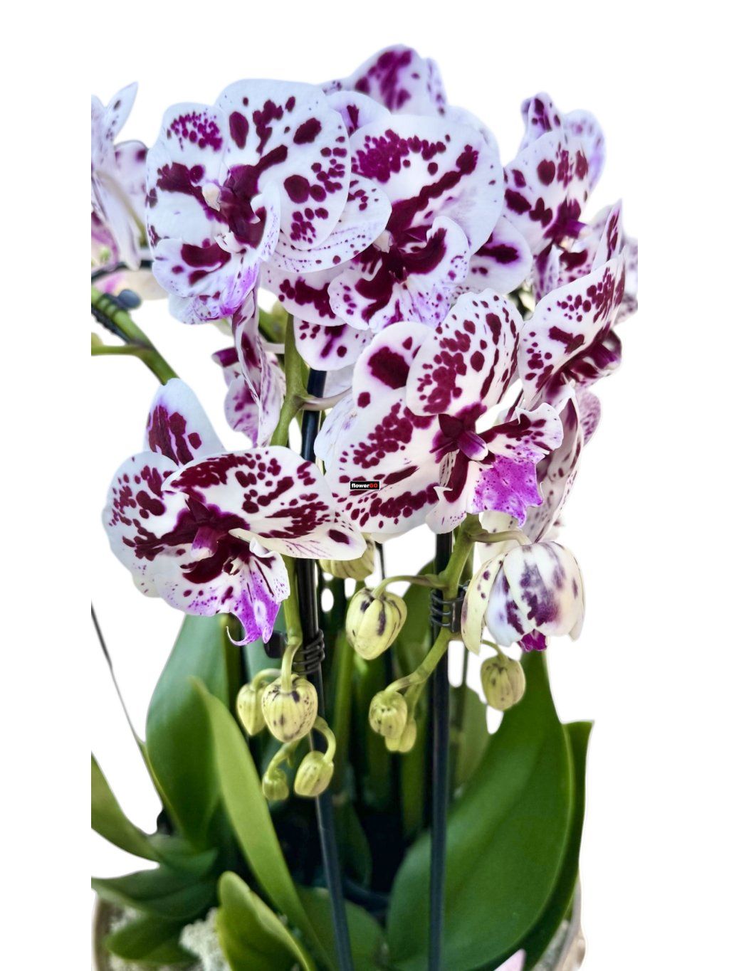 Tato výjimečná Phalaenopsis zaujme na první pohled svou bohatostí a noblesou. Několik silných výhonů nese přibližně 40 dokonale tvarovaných květů, které společně vytvářejí luxusní, harmonický celek s výrazným vizuálním efektem. Každý kus působí reprezentativně, elegantně a sebevědomě – přesně tak, jak má prémiová orchidej působit.
