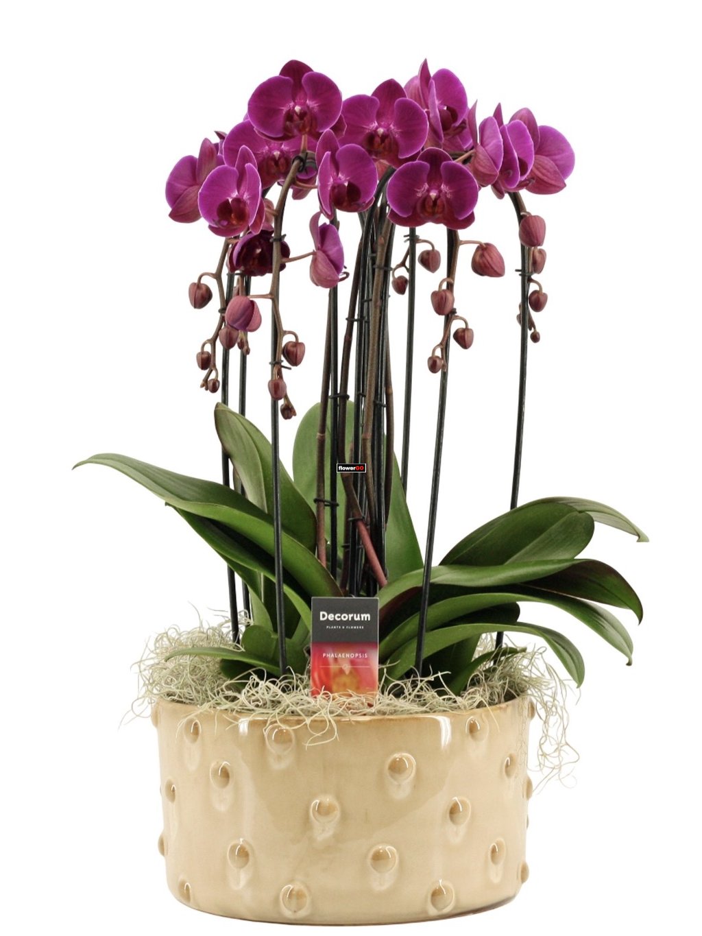 Luxusní prémiový Phalaenopsis s několika výhony (cca 6!) a přibližně 40 květy, která působí bohatě a reprezentativně. Elegantní tvar, dlouhá výdrž květů a výrazný vizuální efekt z ní dělají ideální volbu pro moderní interiér i exkluzivní dar. Barva orchideje dle aktuální dostupnosti na prodejně.
