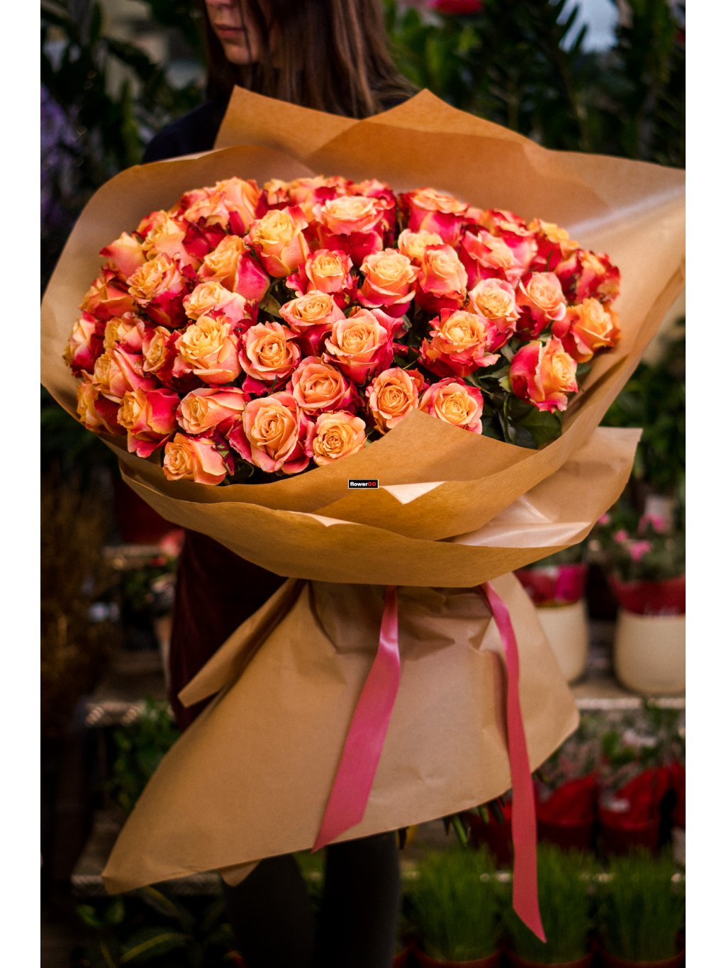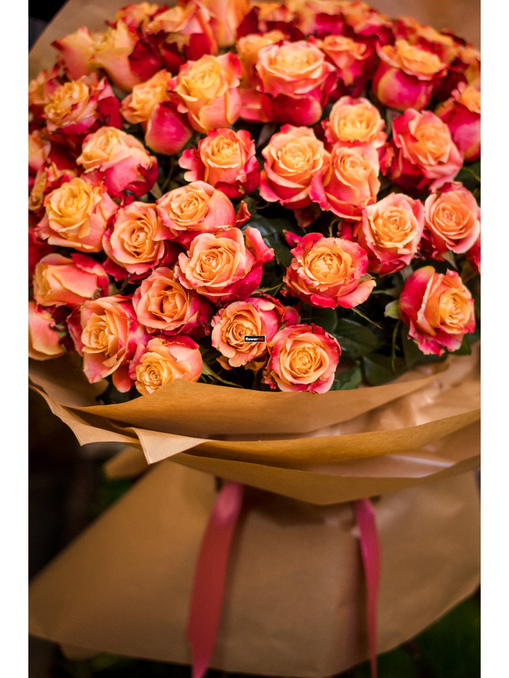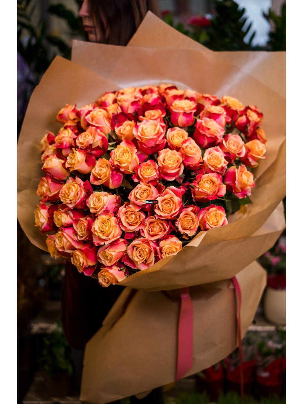 Barevné kombinace květů, odstíny růží i přesné složení kytic se mohou mírně lišit podle aktuální dostupnosti na našich prodejnách, odkud je vaše kytice připravována a doručována.