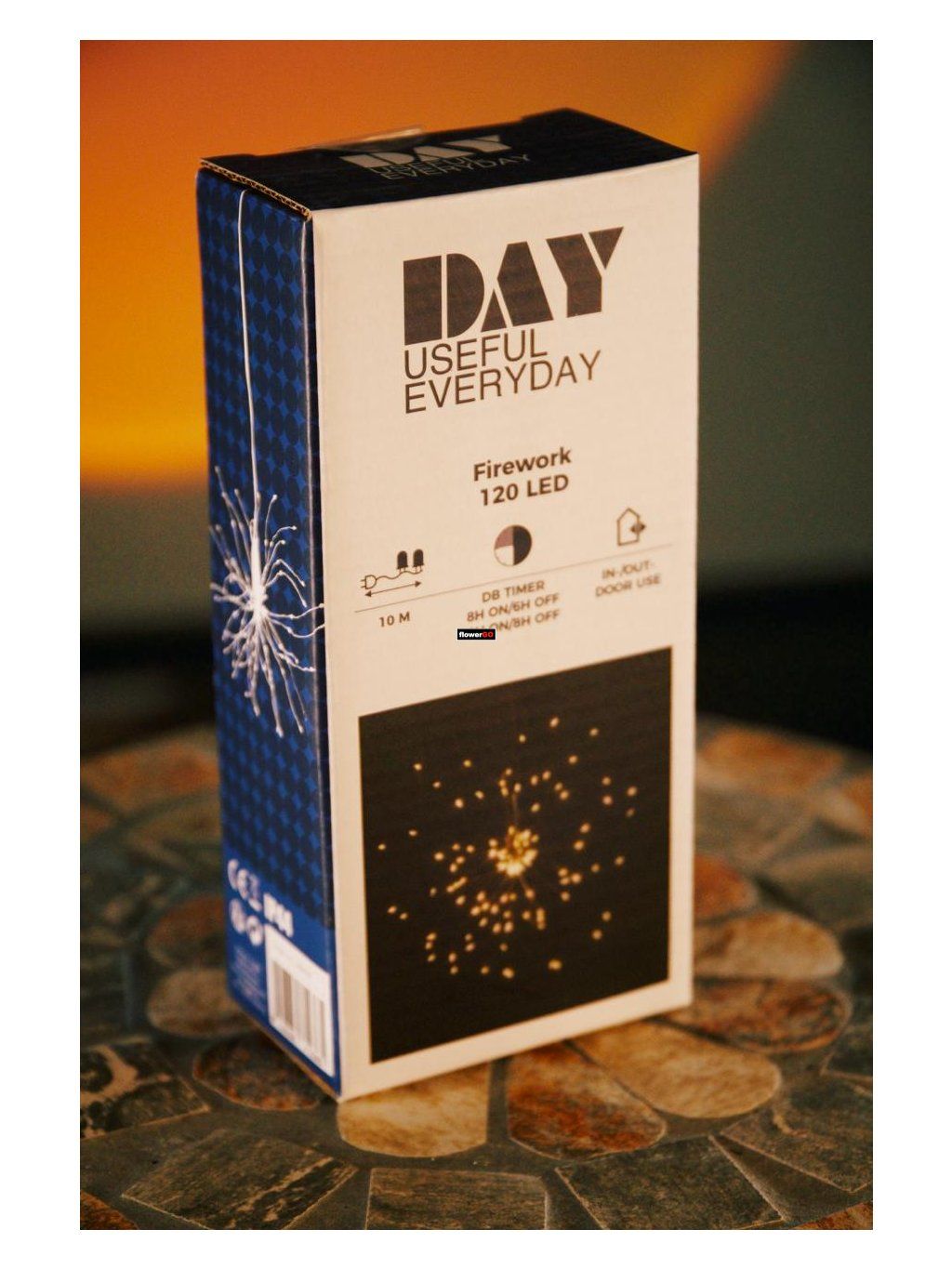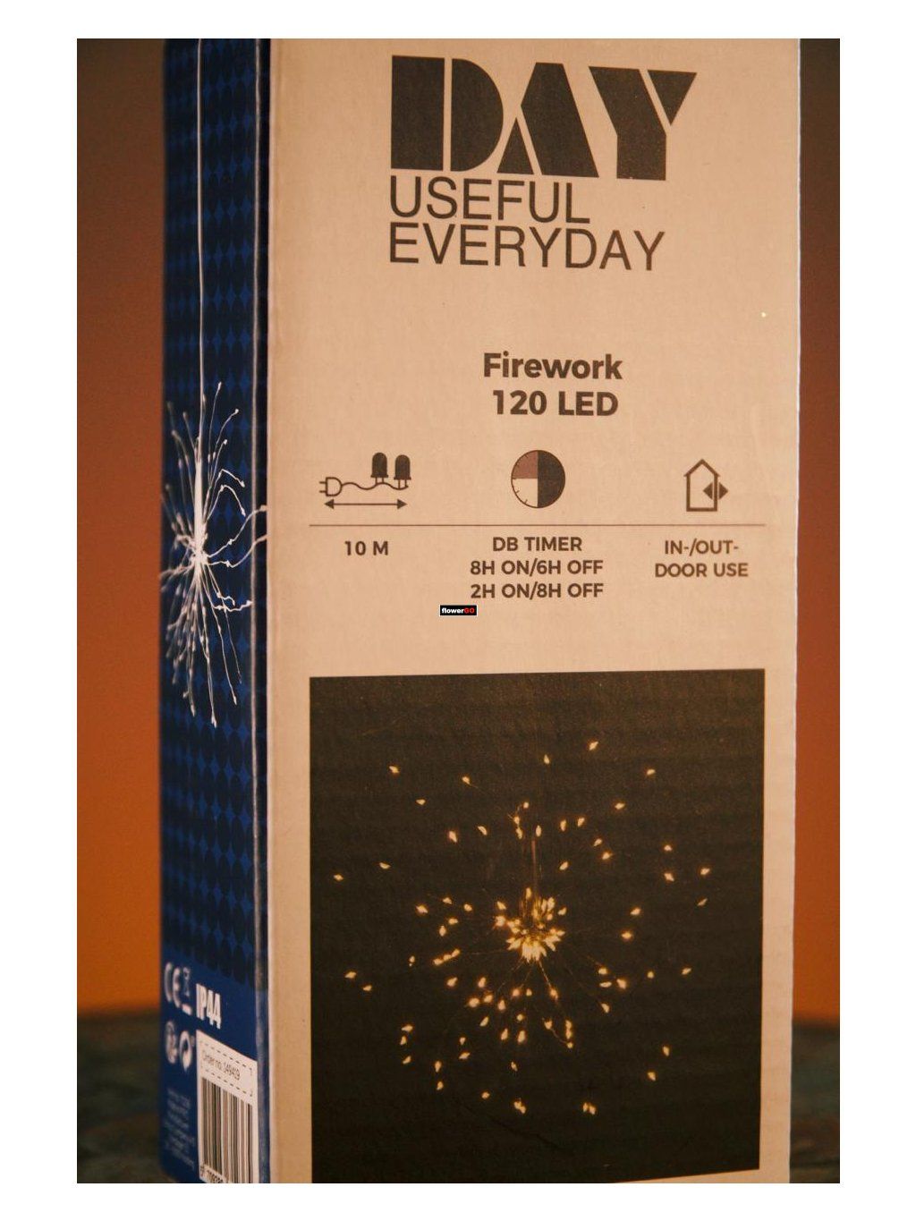 Efektní dekorační světelný řetěz typu Firework se 120 LED diodami vytváří jemný světelný efekt připomínající ohňostroj. Ideální pro slavnostní aranžmá, interiérové dekorace i venkovní použití během sezóny.