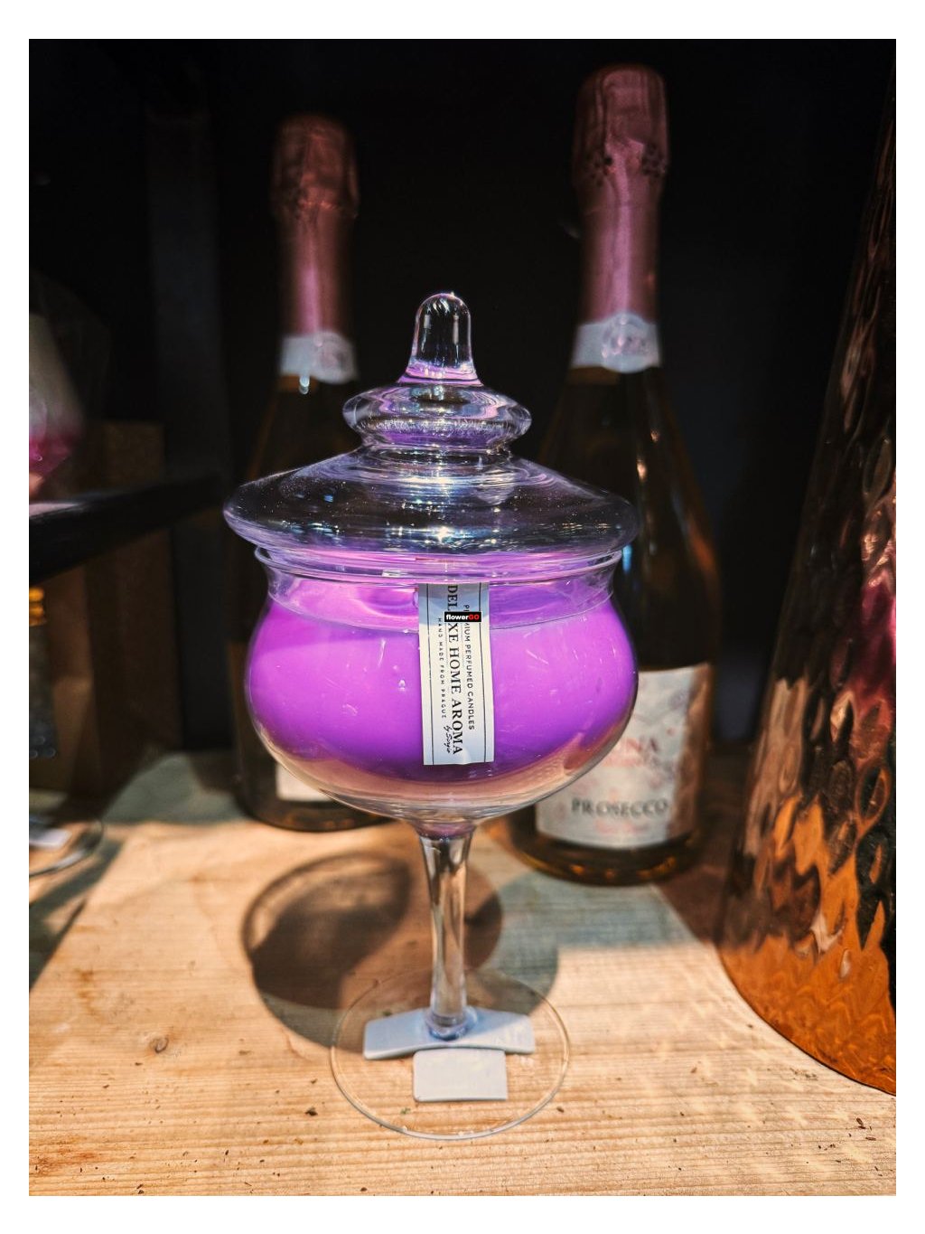 Svíčka DeluXearoma v luxusní skleničce s křišťálově čistým skleněným víčke